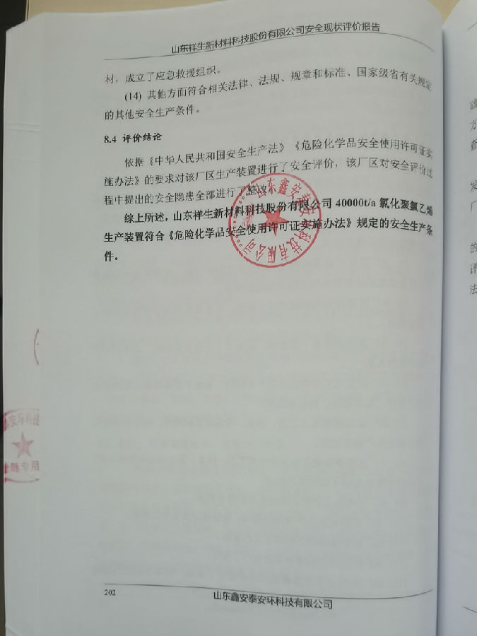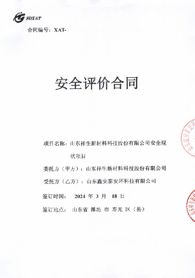 项目名称 | 山东祥生新材料科技股份有限公司安全现状评价 | 所属行业 | 危险化学品使用 |