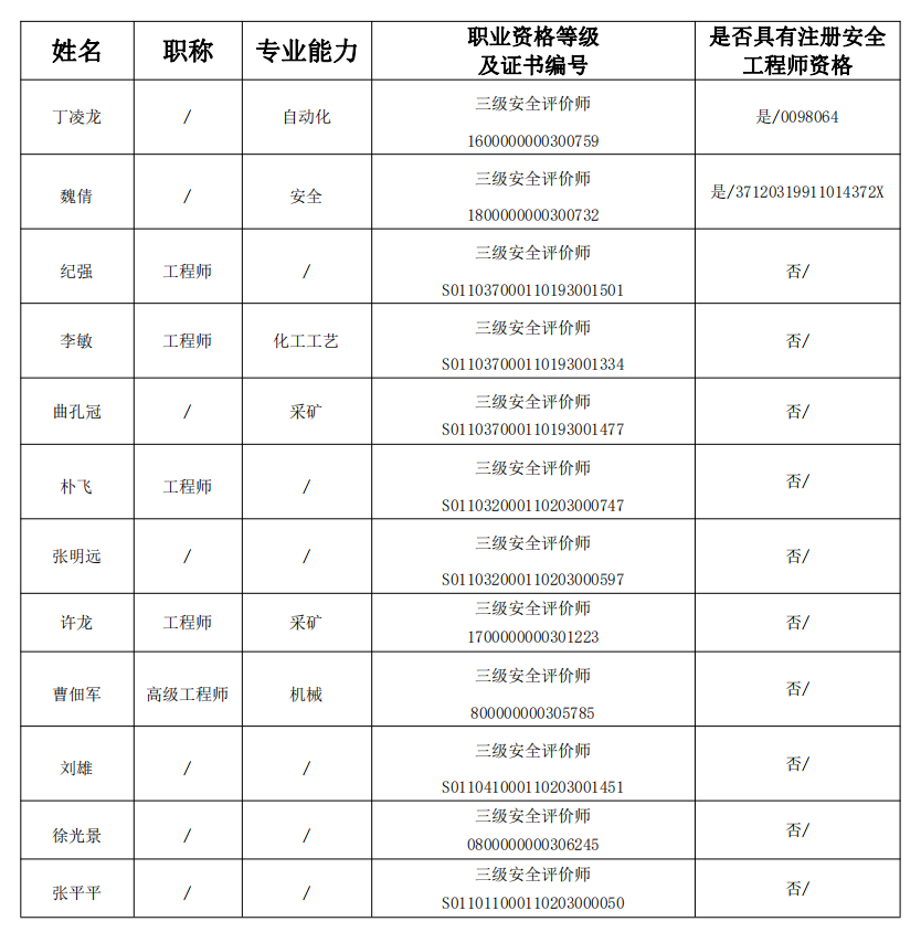 专职安全评价师基本情况汇总表(三级)