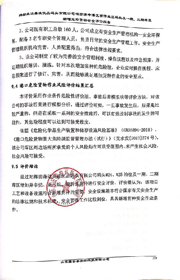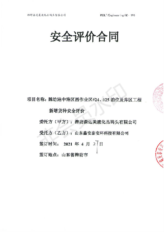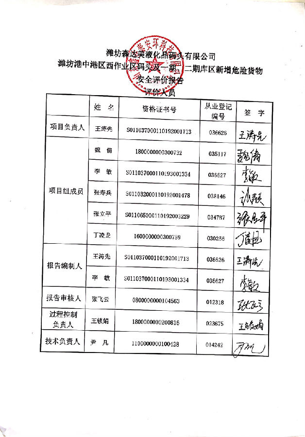项目单位:潍坊森达美液化品码头有限公司 | |||