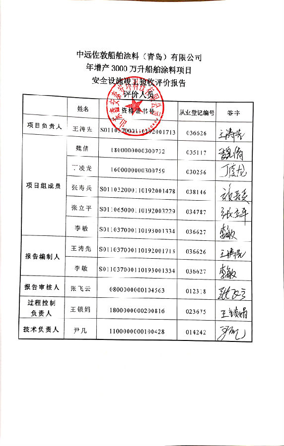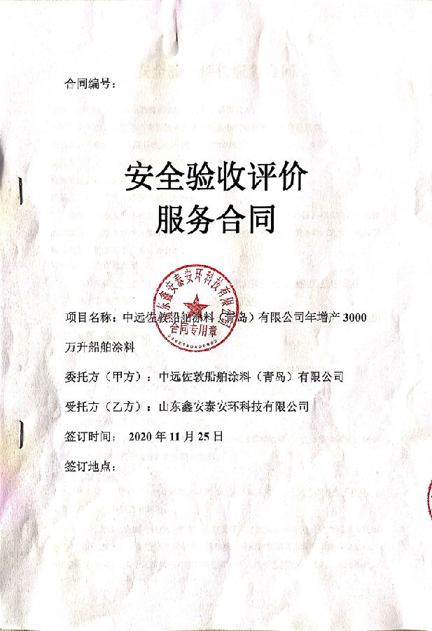 项目单位:中远佐敦船舶涂料(青岛)有限公司 | |||