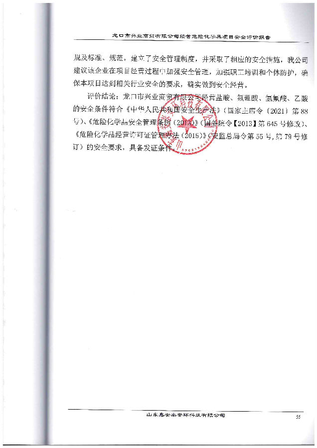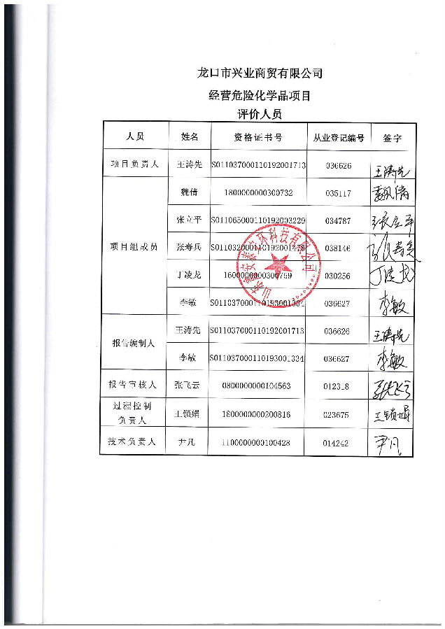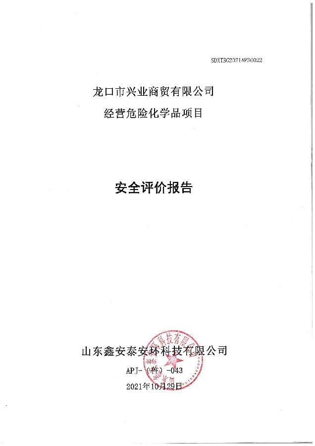 项目名称 | 龙口市兴业商贸有限公司经营危险化学品项目安全评价 | ||