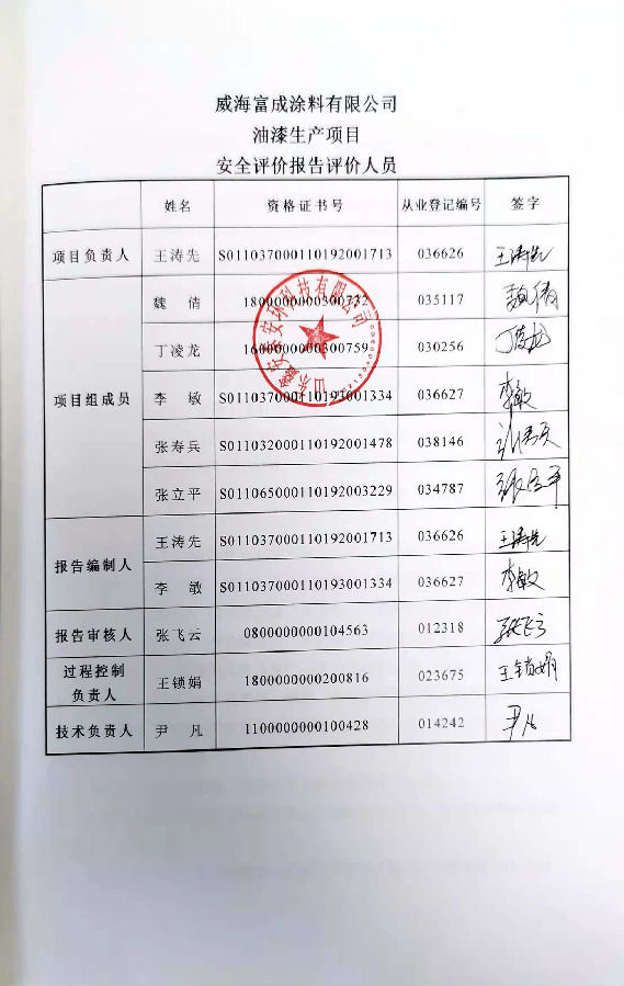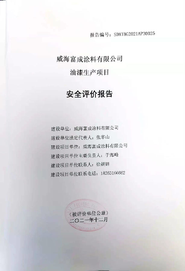 项目名称 | 威海富成涂料有限公司油漆生产项目安全评价报告 | ||