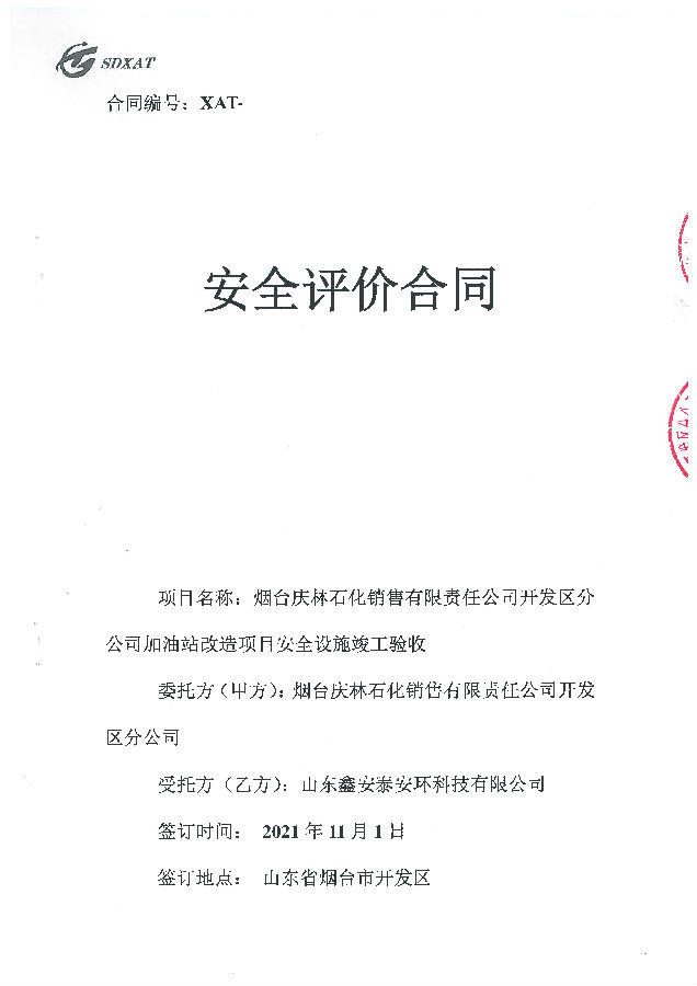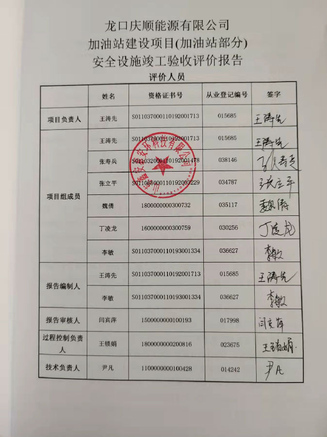 项目名称 | 烟台庆林石化销售有限责任公司开发区分公司加油站改造项目安全验收评价报告 | ||