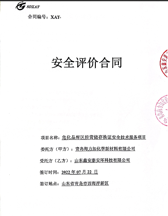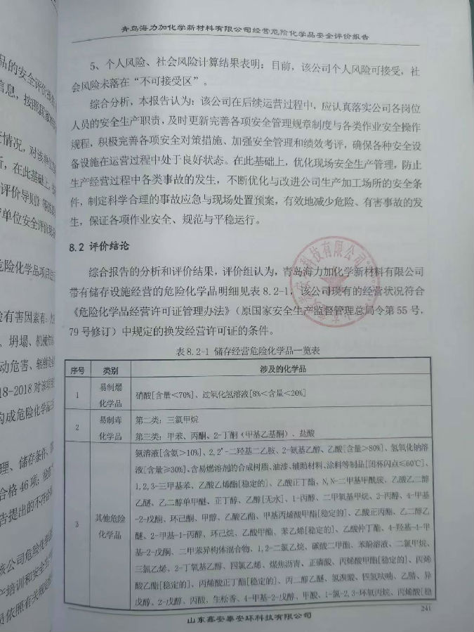 项目名称 | 青岛海力加化学新材料有限公司经营危险化学品安全评价报告 | ||
