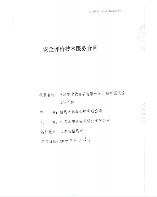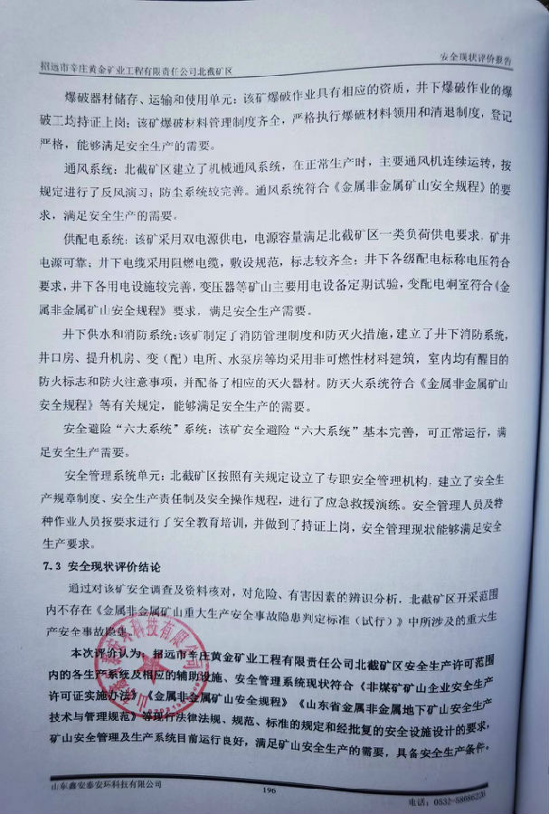 项目名称 | 招远市辛庄黄金矿业工程有限责任公司 北截矿区安全现状评价报告 | |||
