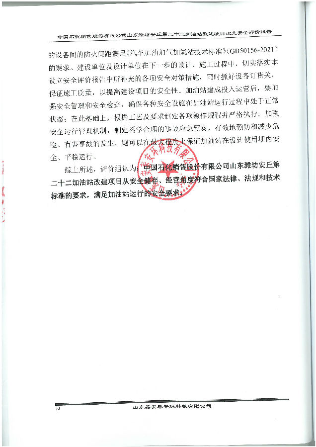 中国石化销售股份有限公司山东潍坊安丘第二十二加油站改建项目