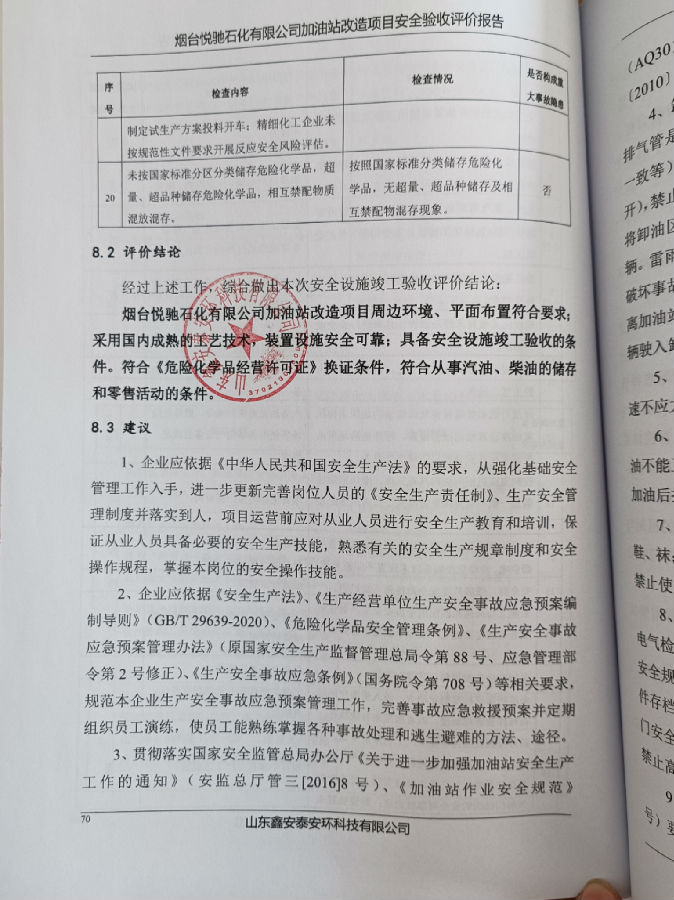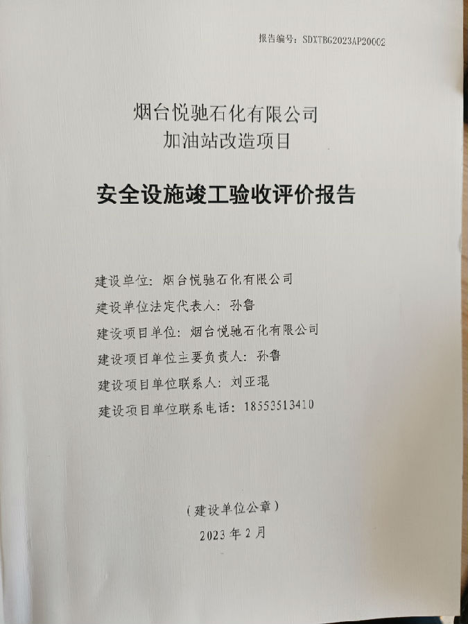 烟台悦驰石化有限公司加油站改造项目安全验收评价报告