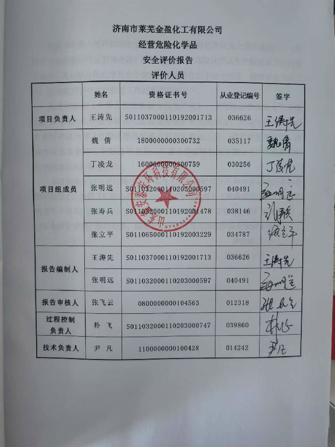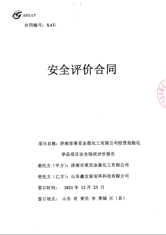 项目名称 | 济南市莱芜金盈化工有限公司经营危险化学品项目安全评价报告 | ||