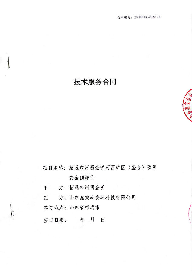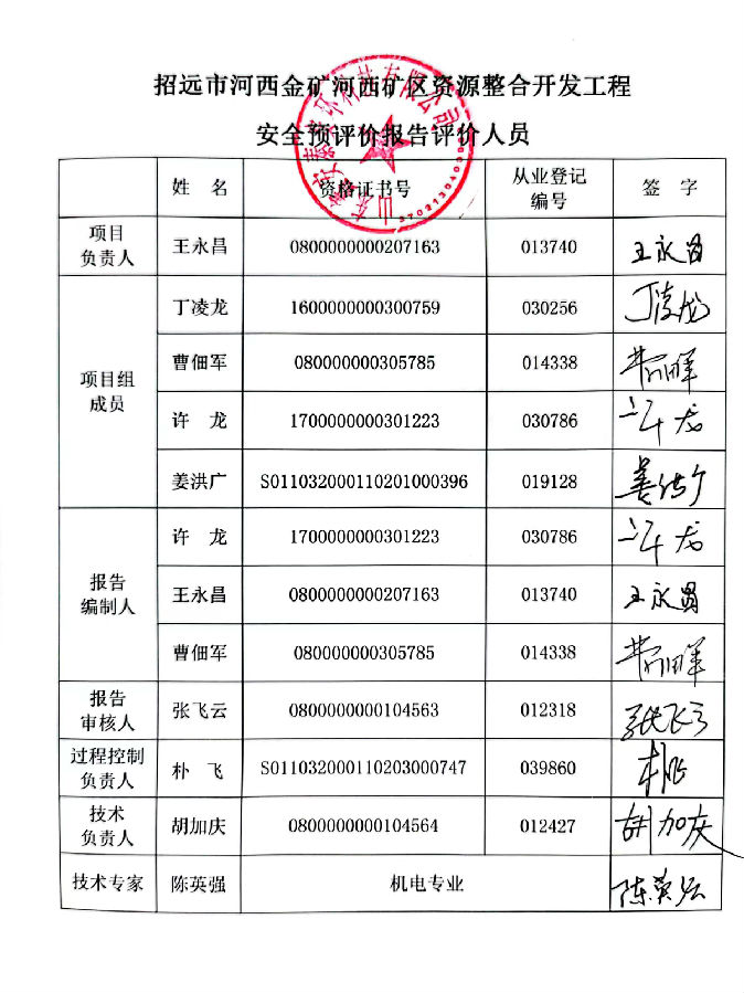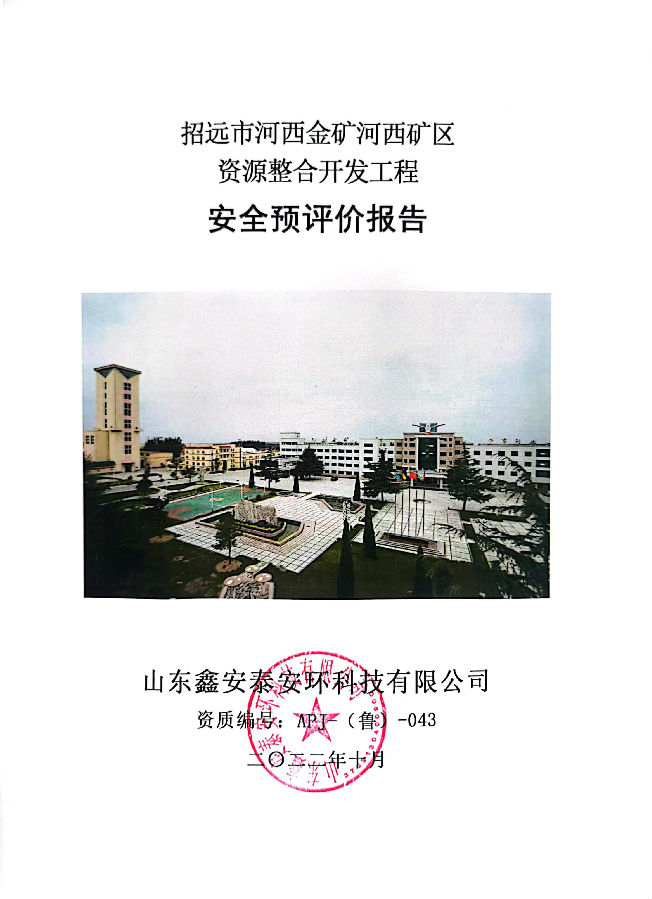 项目名称 | 招远市河西金矿河西矿区资源整合开发工程安全预评价 | ||