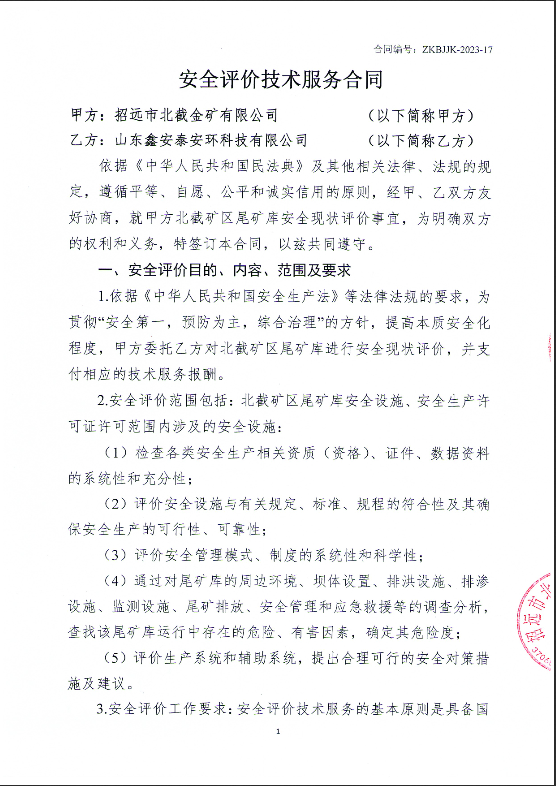 项目单位:招远市北截金矿有限公司 项目投资:/ | |||
