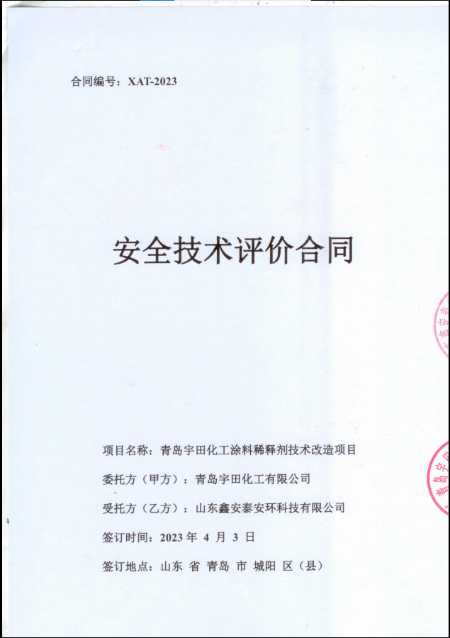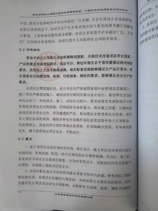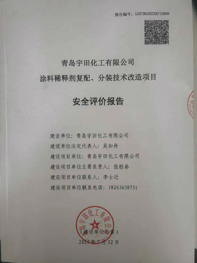 项目名称 | 青岛宇田化工有限公司涂料稀释剂复配、分装技术改造项目安全评价报告 | ||
