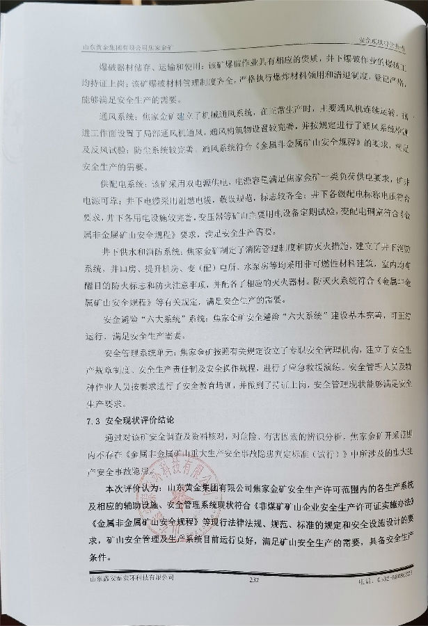 项目名称 | 山东黄金矿业(莱州)有限公司焦家金矿安全现状评价 | ||