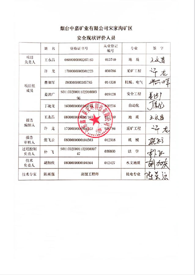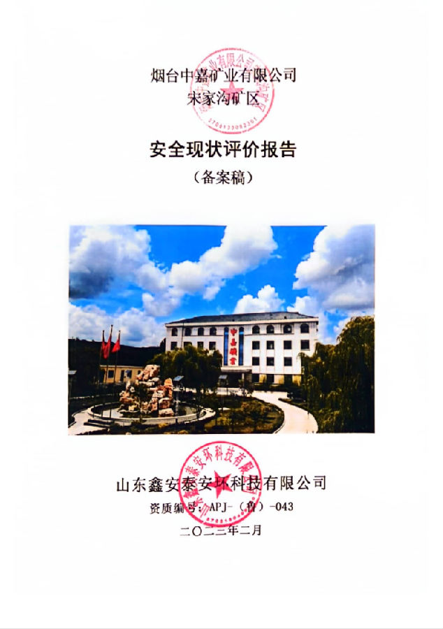 项目名称 | 烟台中嘉矿业有限公司宋家沟矿区安全现状评价报告 | ||