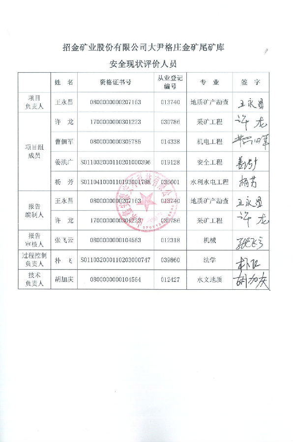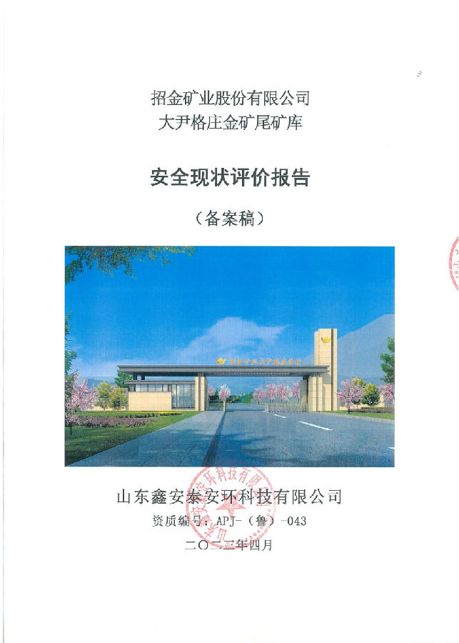 项目名称 | 招金矿业股份有限公司大尹格庄金矿尾矿库安全现状评价 | ||