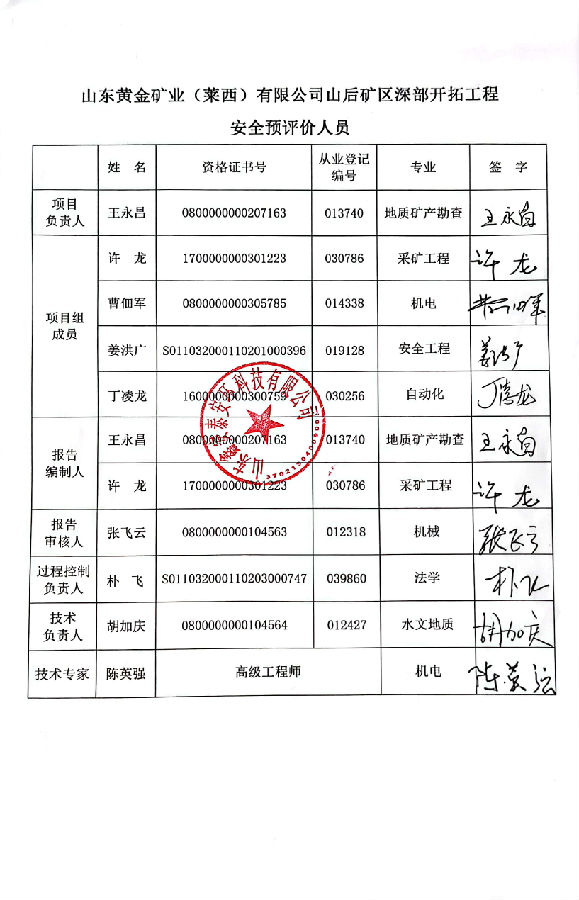 项目名称 | 山东黄金矿业(莱西)有限公司山后矿区深部开拓工程安全预评价 | ||