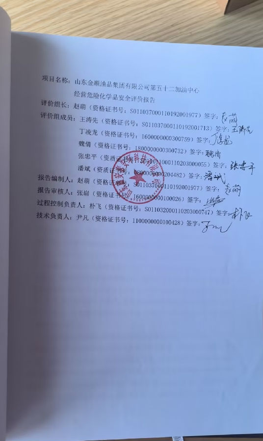 项目名称 | 山东金顺油品集团有限公司第五十二加油中心经营危险化学品 | ||