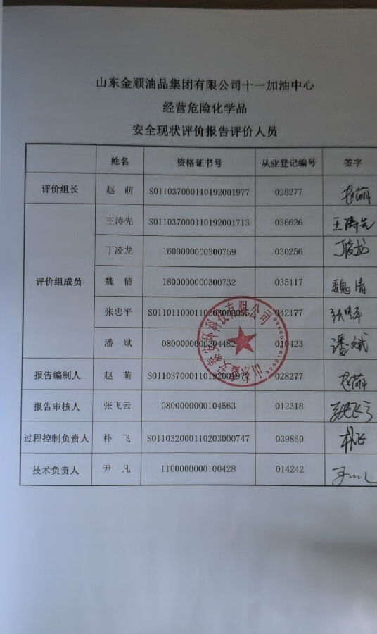 项目名称 | 山东金顺油品集团有限公司十一加油中心经营危险化学品 | ||