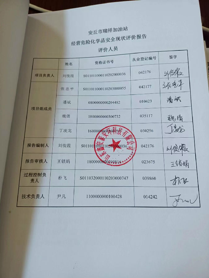 项目单位:安丘市瑞祥加油站 | |||