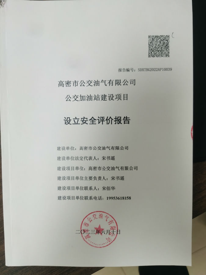 项目单位:高密市公交油气有限公司 法人代表:宋书瑶 | |||