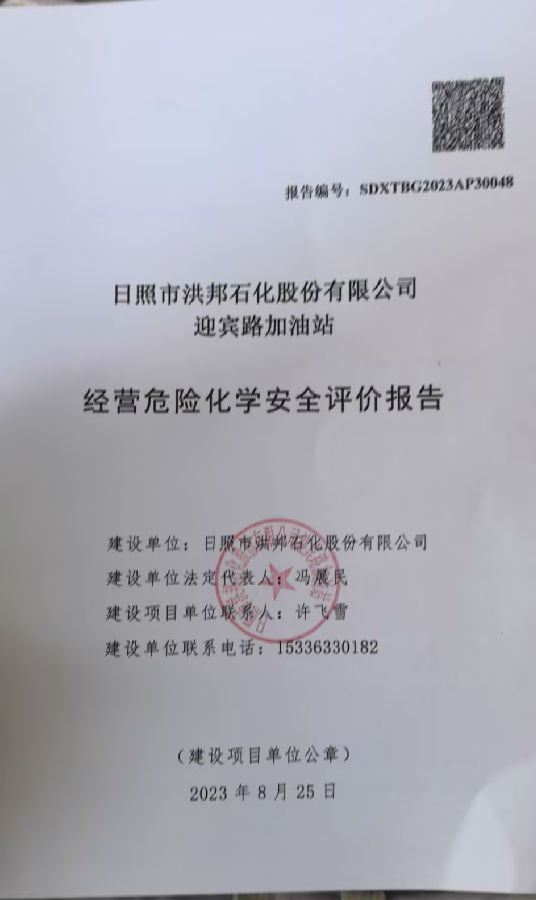 项目单位:日照市洪邦石化股份有限公司 该加油站于2021年12月13日取得了《危险化学品经营许可证》(证书编号为:鲁日危化经字[2020]000051号),有效期至2023年09月17日,需要换发危险化学品经营许可证,所以需要进行安全评价。 | |||