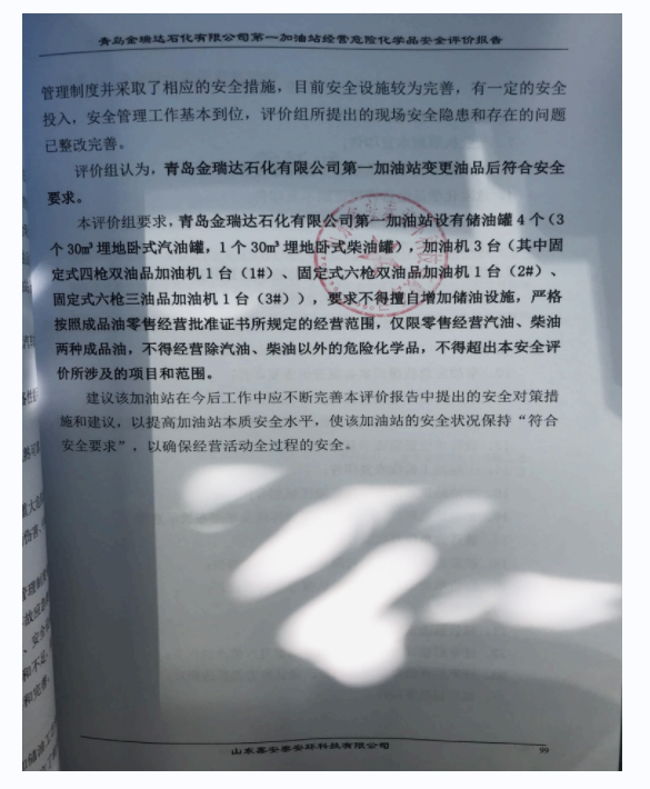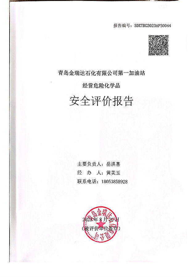 项目名称 | 青岛金瑞达石化有限公司第一加油站经营危险化学品安全评价报告 | ||