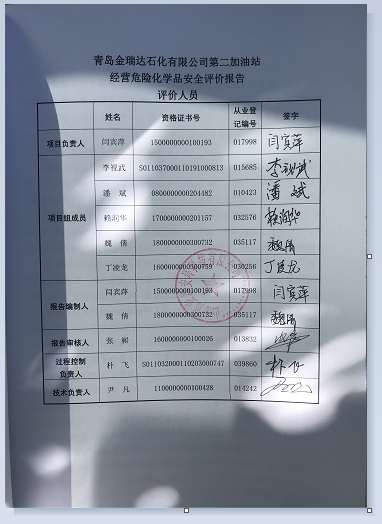项目名称 | 青岛金瑞达石化有限公司第二加油站经营危险化学品安全评价报告 | ||