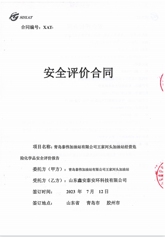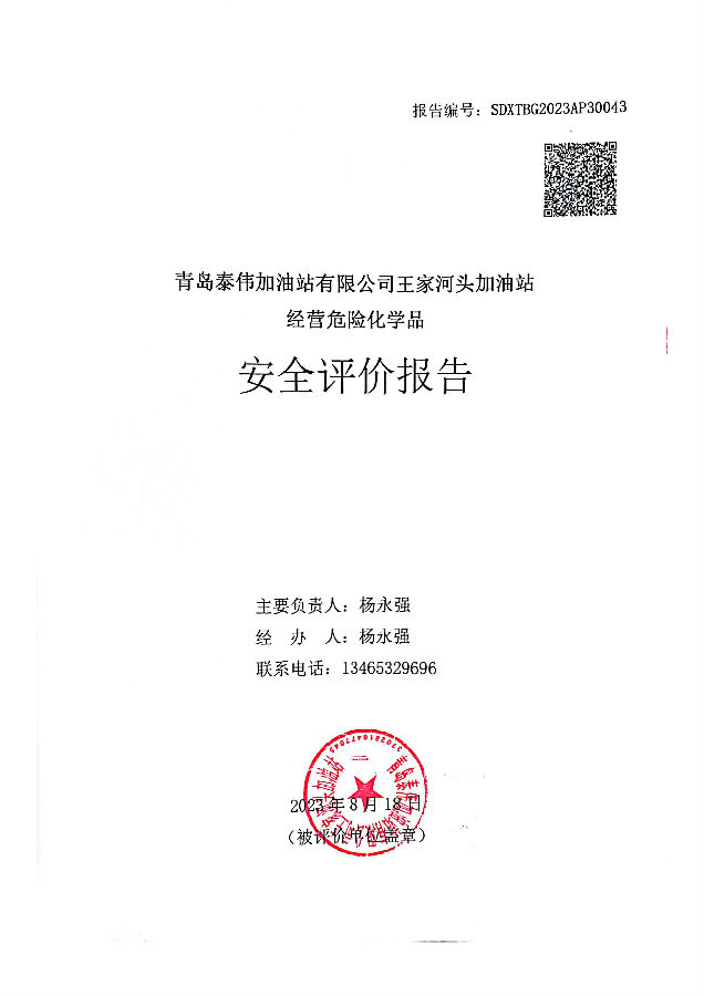 项目名称 | 青岛泰伟加油站有限公司王家河头加油站经营危险化学品安全评价报告 | ||