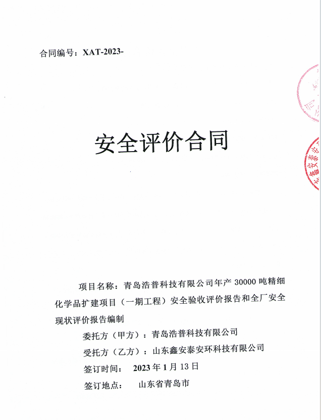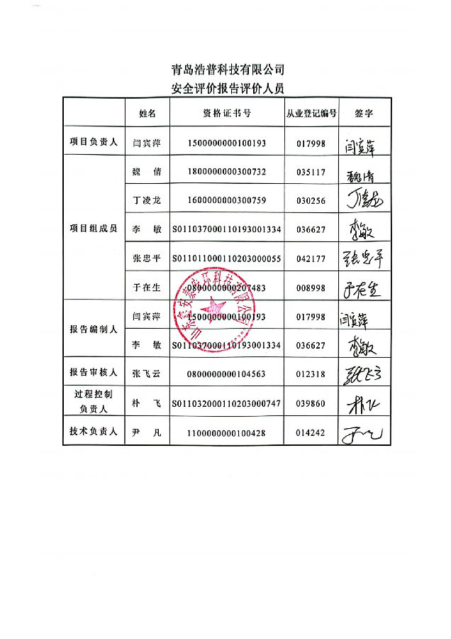 项目名称 | 青岛浩普科技有限公司安全评价报告 | ||