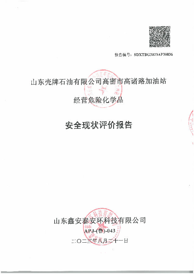 项目名称 | 山东壳牌石油有限公司高密市高诸路加油站经营危险化学品项目 | ||