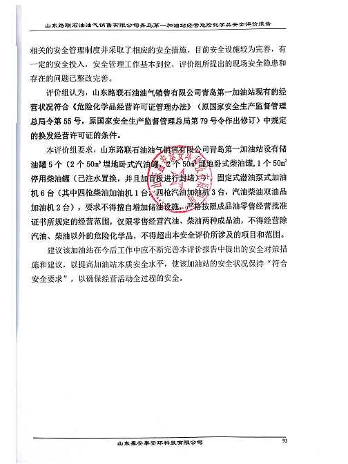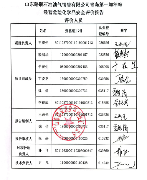 项目名称 | 山东路联石油油气销售有限公司青岛第一加油站经营危险化学品安全评价报告 | ||