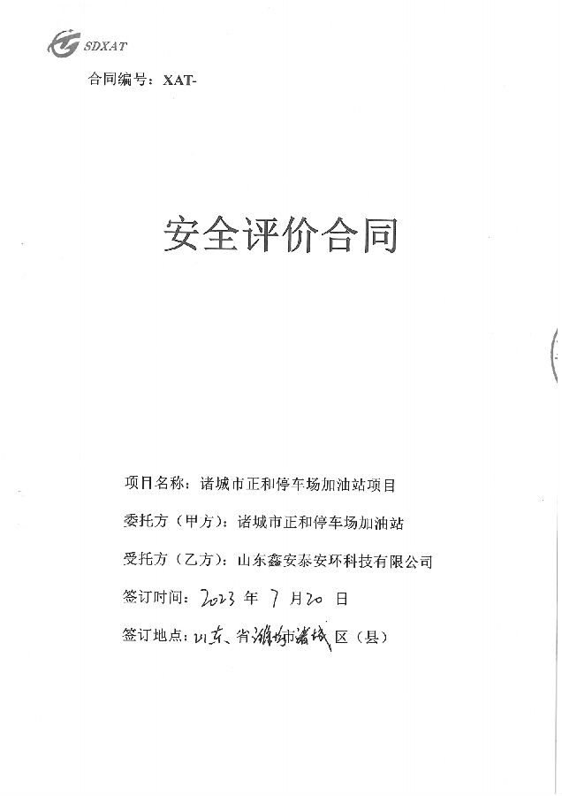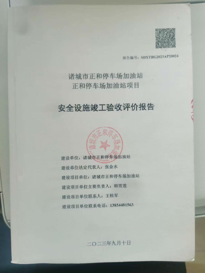项目单位:诸城市正和停车场加油站 法人代表:张金水 | |||