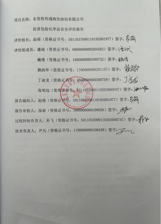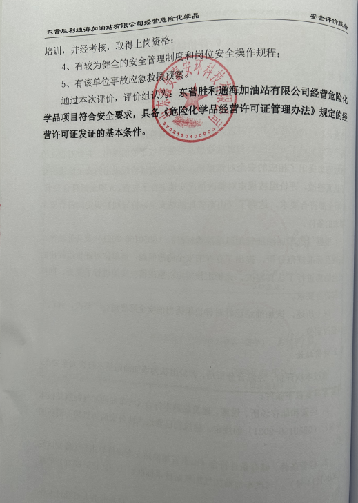 项目名称 | 东营胜利通海加油站有限公司经营危险化学品 | ||