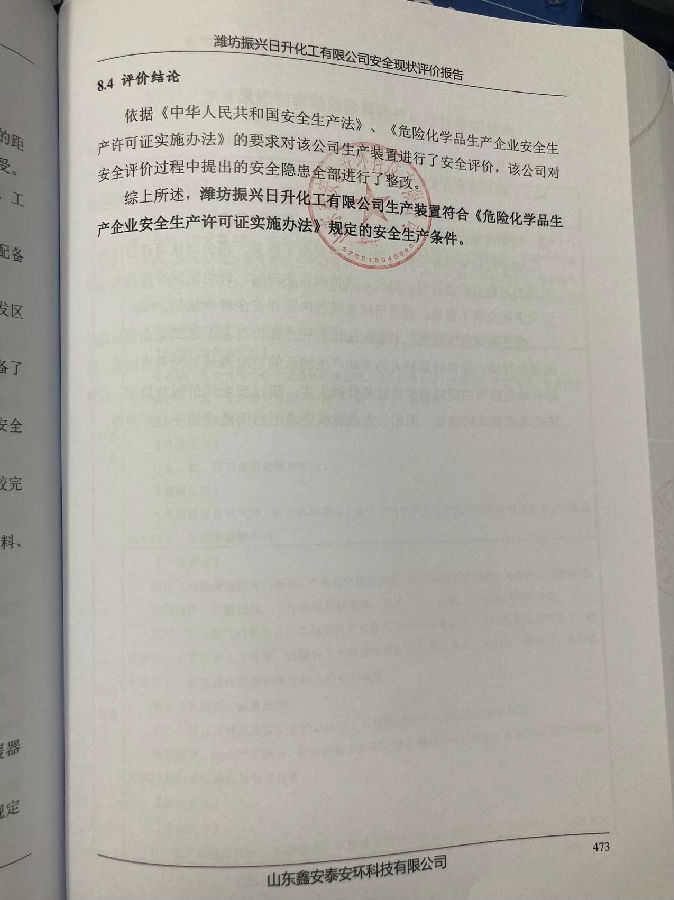 项目名称 | 潍坊振兴日升化工有限公司全厂在役生产装置安全现状评价 | ||
