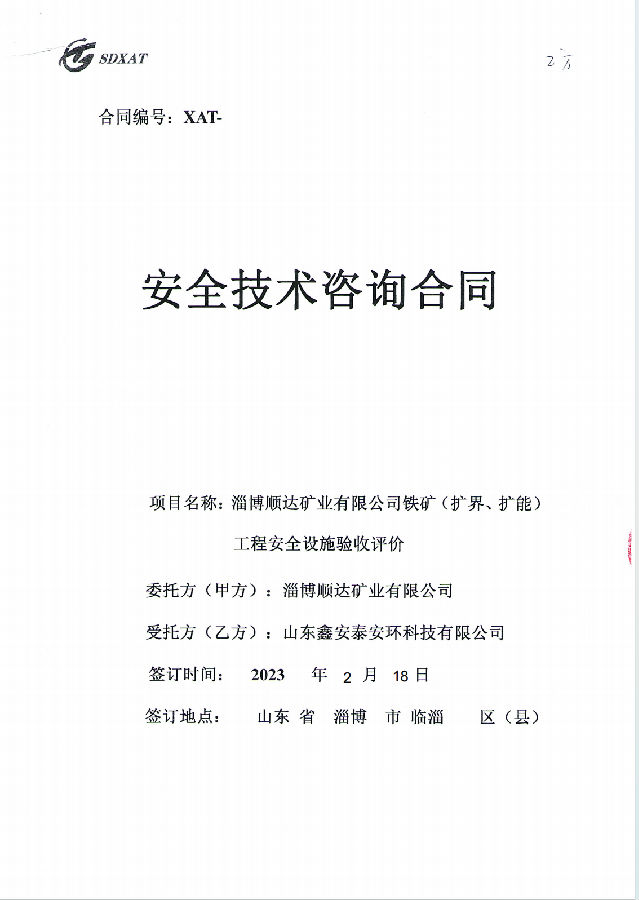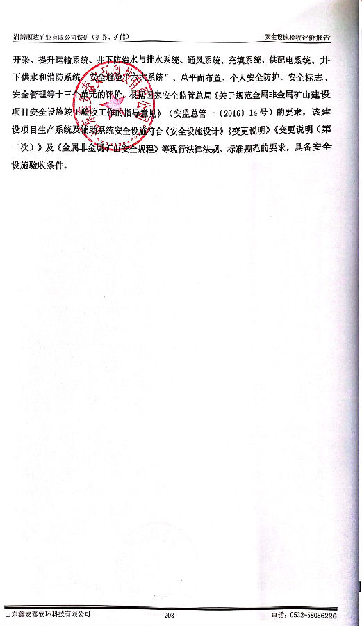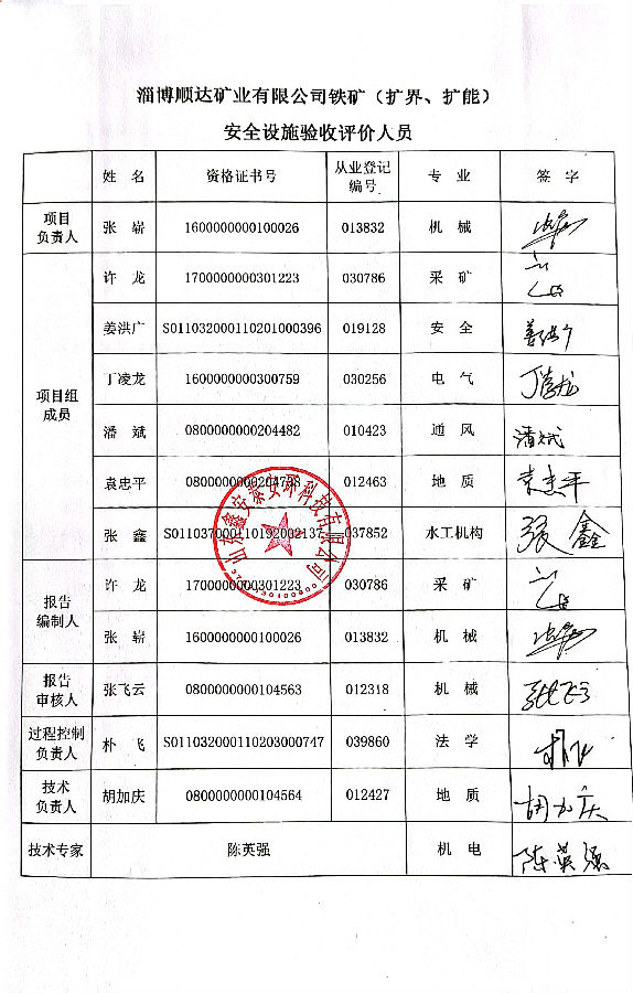 项目名称 | 淄博顺达矿业有限公司铁矿(扩界、扩能)安全设施验收评价报告 | ||