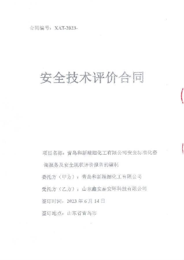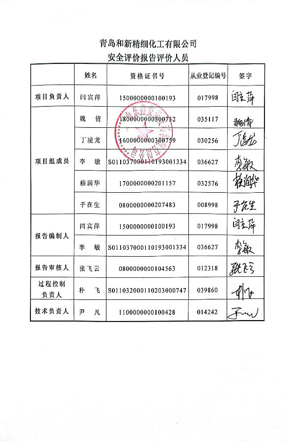 项目名称 | 青岛和新精细化工有限公司安全评价报告 | ||
