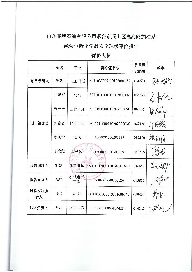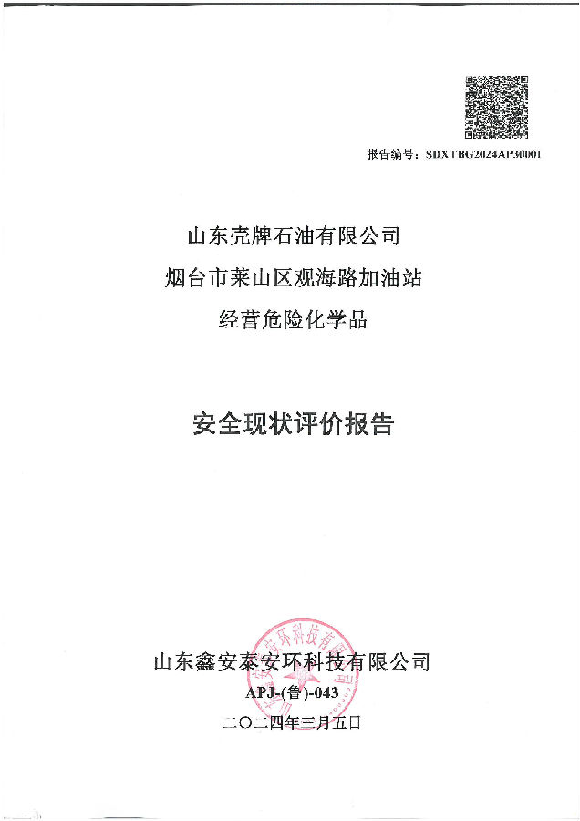 项目名称 | 山东壳牌石油有限公司烟台市莱山区观海路加油站经营危险化学品安全评价 | ||