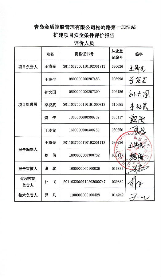 项目名称 | 青岛金盾控股管理有限公司松岭路第一加油站扩建项目安全条件评价报告 | ||