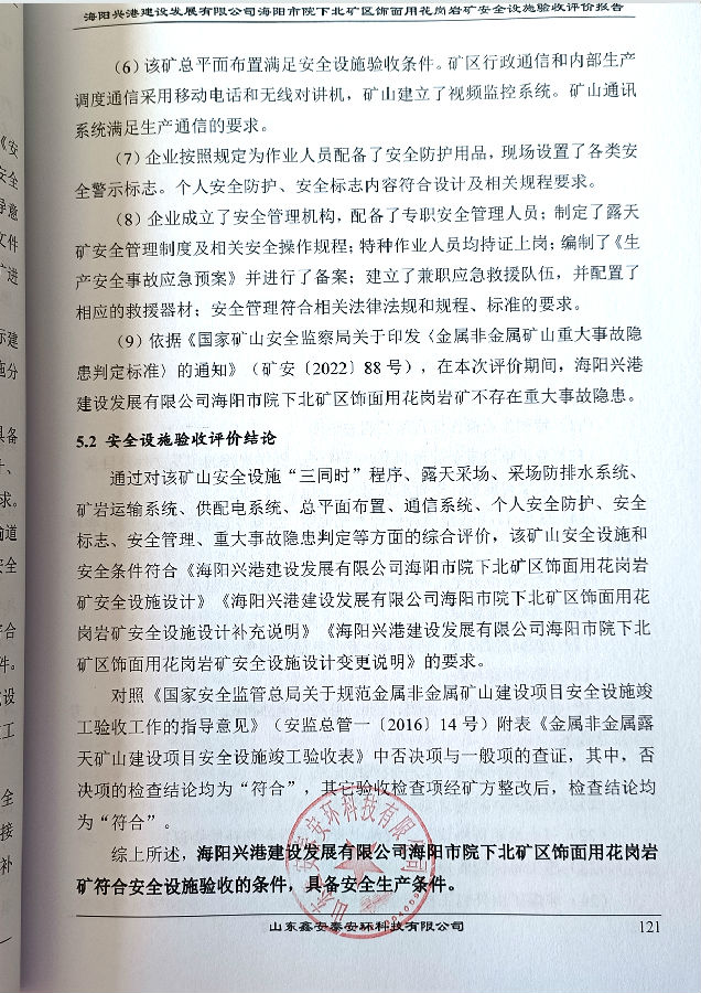 海阳兴港建设发展有限公司海阳市院下北矿区饰面用花岗岩矿