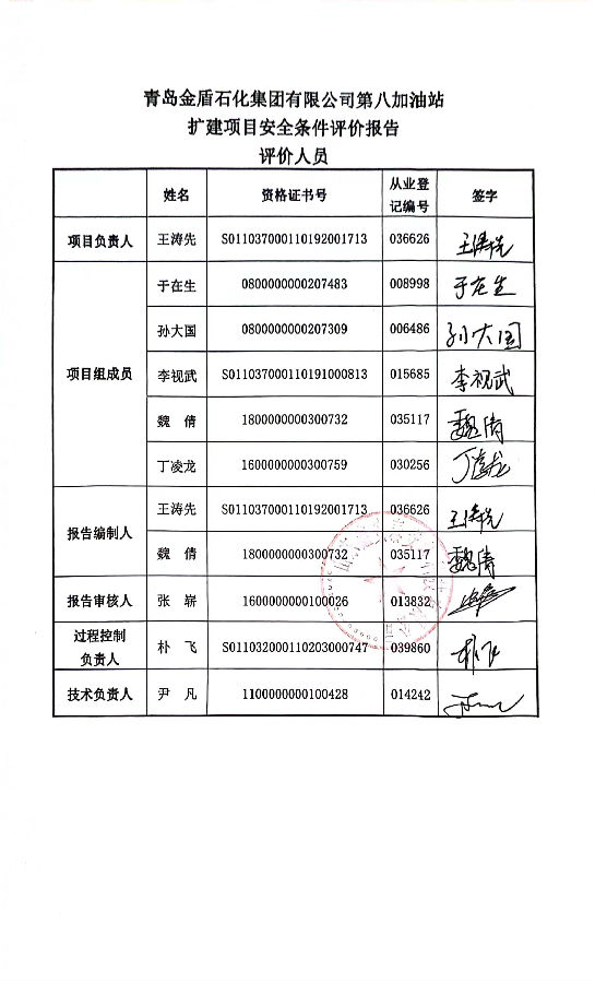 项目名称 | 青岛金盾石化集团有限公司第八加油站扩建项目安全条件评价报告 | ||