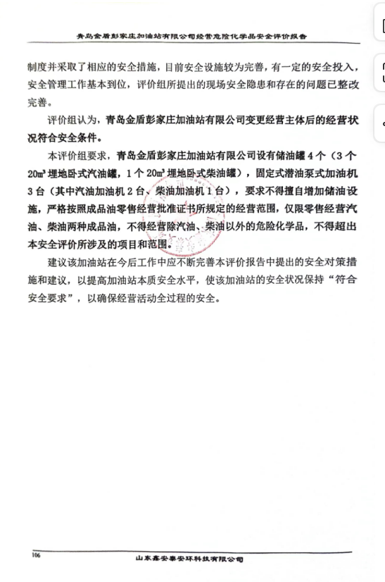 项目名称 | 青岛金盾彭家庄加油站有限公司经营危险化学品安全评价报告 | ||