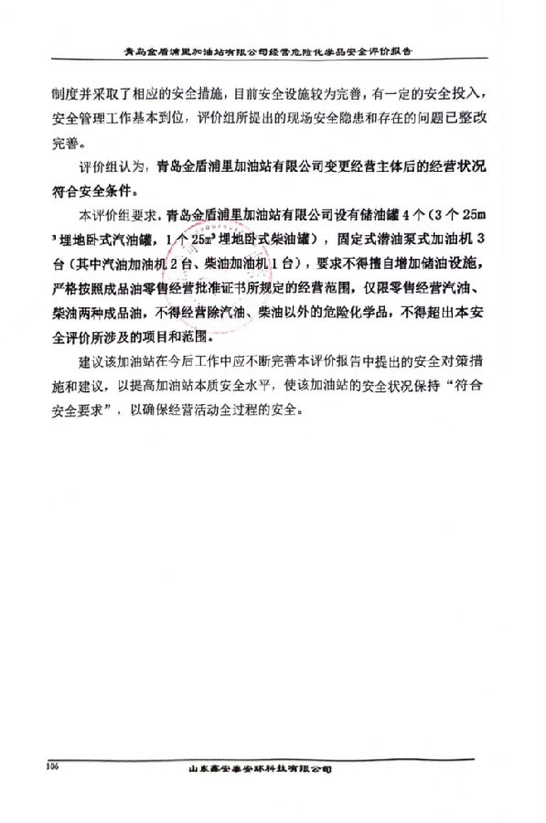 项目名称 | 青岛金盾浦里加油站有限公司经营危险化学品安全评价报告 | ||